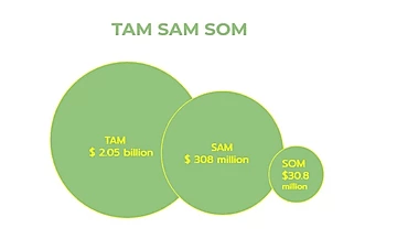 Total Available Market (TAM) is the total market demand for a product or service. This will comprise of all your competitors including the big players. Serviceable Available Market (SAM ) is the segment of the TAM targeted by your products and services which is within your geographical reach. Serviceable Obtainable Market is the portion of SAM that you can capture.